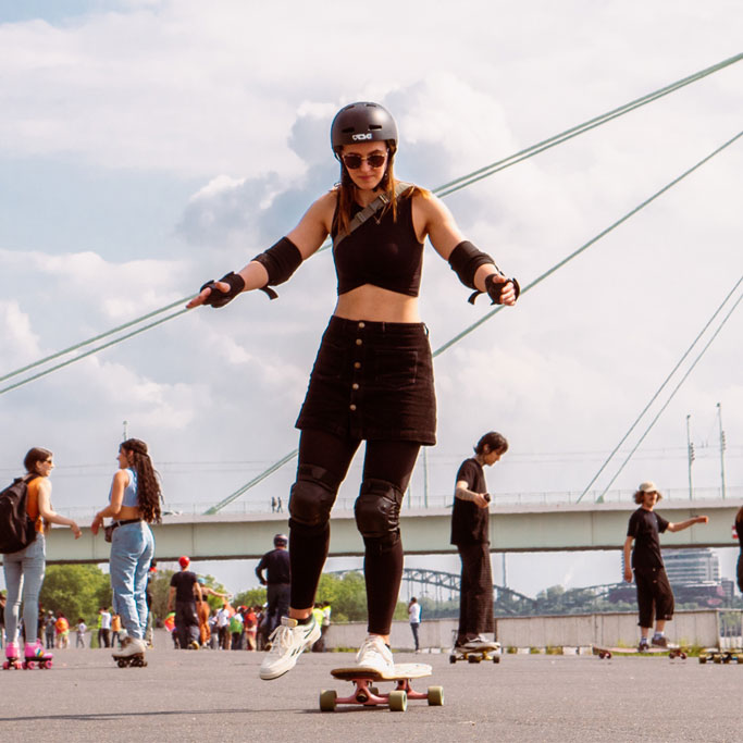 Longboarding is not only a practical way to get around, it also builds self-confidence, promotes body awareness and sharpens your eye for the small successes in life. I am very much looking forward to passing on this joy to you.